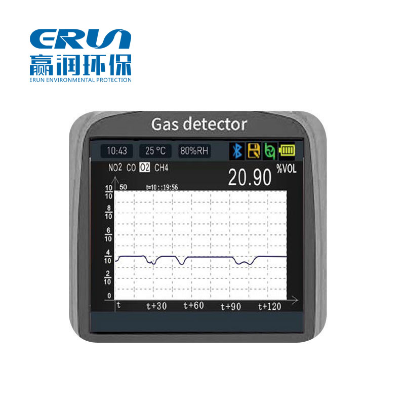 同時顯示四種氣體濃度、大字體循環(huán)顯示單通道氣體的濃度、實時曲線。各通道之間自動循環(huán)或手動循環(huán)
