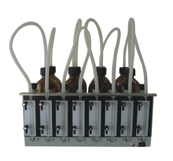 贏潤環(huán)保研發(fā)生產(chǎn)的ERUN-BY-2型直讀BOD5測定儀,把水樣以及二氧化碳吸收劑(NaOH)放入培養(yǎng)瓶內(nèi)并密封,置于生化培養(yǎng)箱內(nèi),當被測樣品在20±1℃條件下恒溫進行五日培養(yǎng)后,有機物轉(zhuǎn)變成氮、碳和硫的氧化物,并產(chǎn)生二氧化碳氣體被氫氧化鈉吸收,而培養(yǎng)瓶內(nèi)上部空間的氧氣不斷地供給水樣中微生物的需氧量,培養(yǎng)瓶內(nèi)產(chǎn)生了壓力差,通過檢測玻璃管中汞的高度, 即可計算出水樣在規(guī)定測定期間內(nèi)的BOD值。